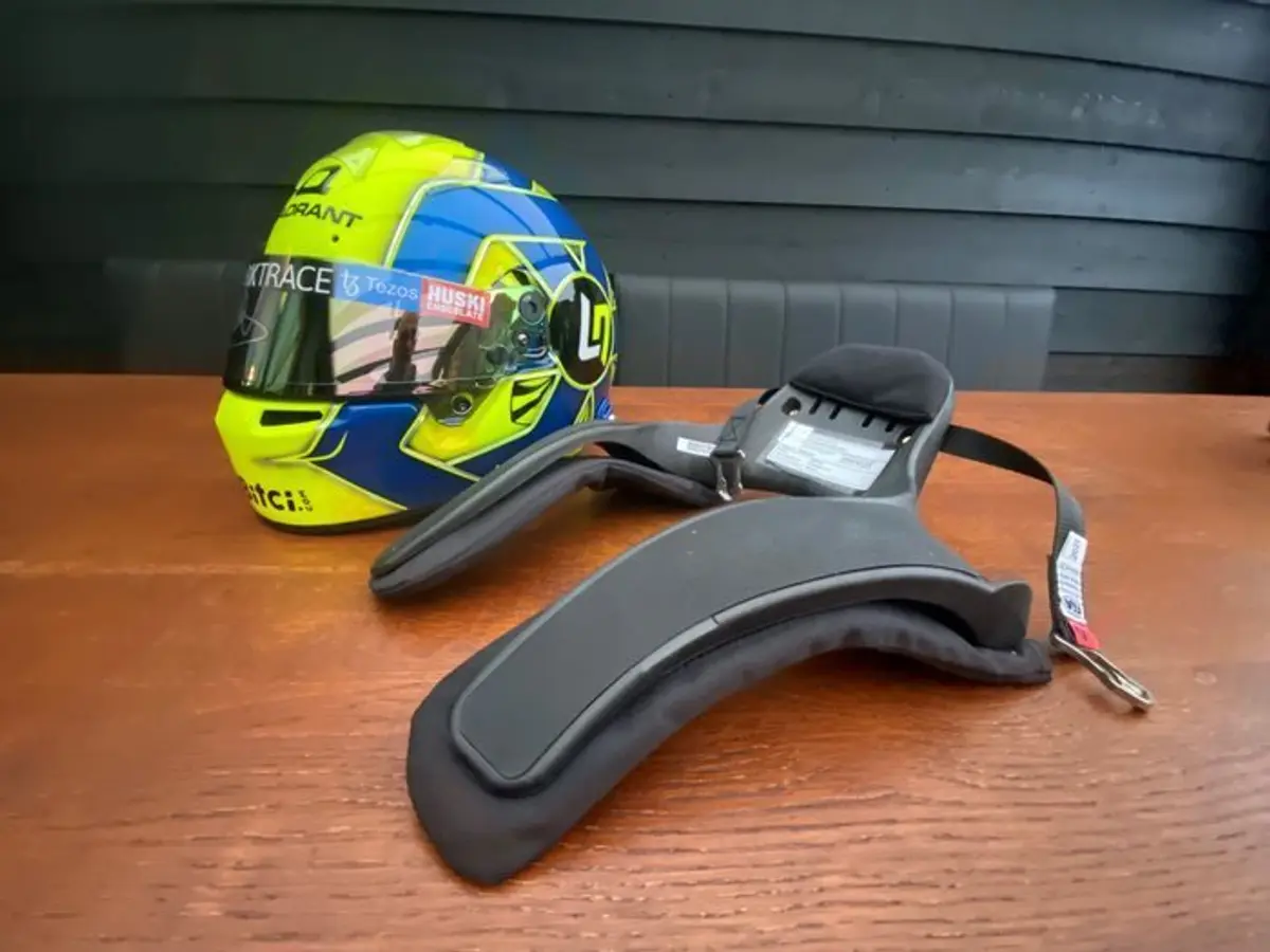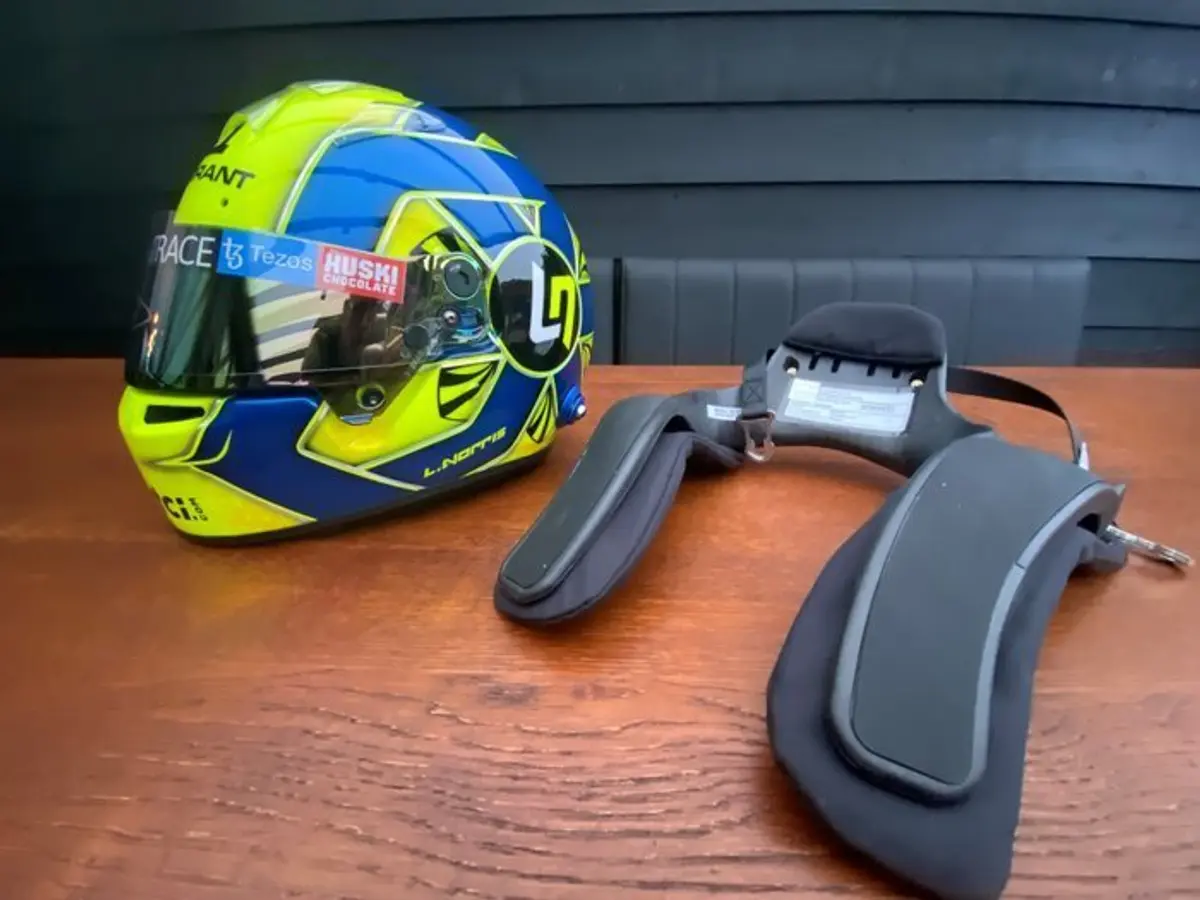 Volledige grootte - Lando Norris - gesigneerd - 2021 Bell-helm met HANS-apparaat