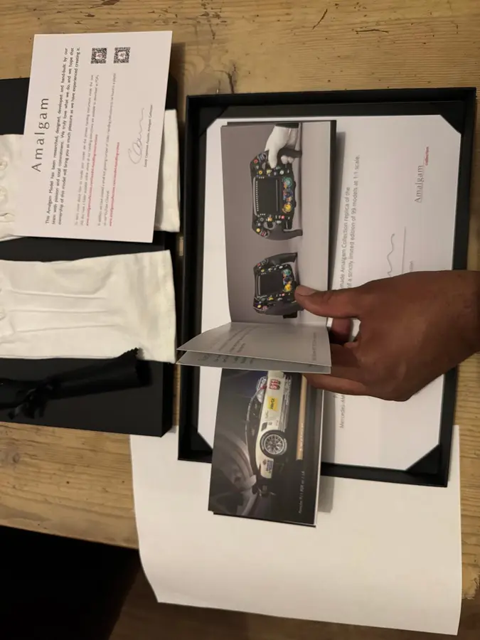 Het is een showmodel dat is gemaakt met de originele tekeningen en gegevens van het Mercedes F1-team en is gemaakt met dezelfde materialen zoals koolstof, ook zijn alle knoppen en schakelaars werkend.