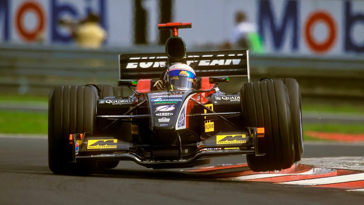- Weergave van logo's van de belangrijkste sponsors van Minardi in 2002, waaronder Go KL, European Aviation, Quadriga (toegevoegd als late sponsor in juni van de Nürburgring GP), Asiatech en Michelin, wat de unieke partnerschappen van het tijdperk weerspiegelt.