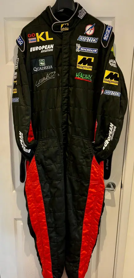 Minardi Formula 1 Pit Crew Suit, gesigneerd door Mark Webber, met originele kitbag. Persoonlijke handtekening van de negenvoudig Grand Prix-winnaar.