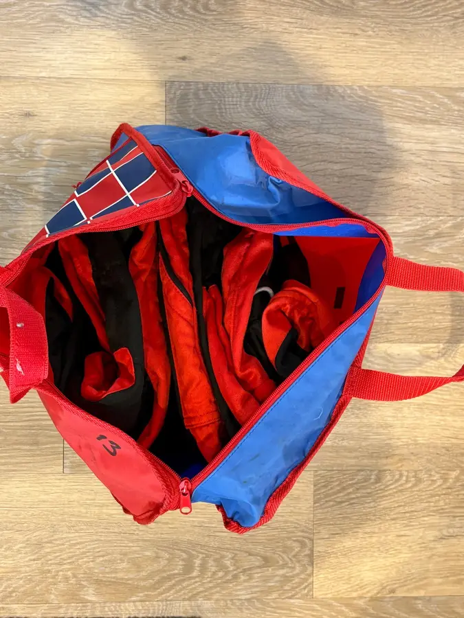 Minardi Formula 1 Pit Crew Suit, gesigneerd door Mark Webber, met originele kitbag.